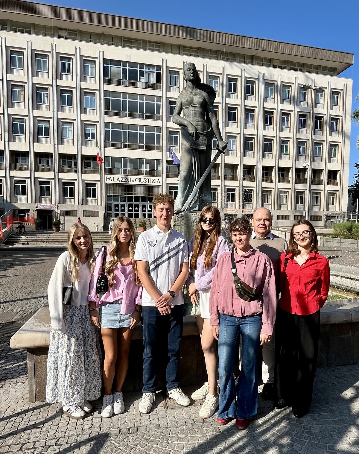 Najważniejszym punktem wyjazdu była wizyta studyjna w Palazzo di Giustizia w Bari, która odbyła się w poniedziałek 29 września. W jej trakcie studenci mogli zapoznać się z zasadami funkcjonowania włoskiego wymiaru sprawiedliwości, w tym kompetencjami przysługującymi sędziom i prokuratorom. Dzięki zaangażowaniu Pani adwokat Mirelli Mazzeo doszło także do bardzo interesującego spotkania z przedstawicielami samorządu adwokackiego w Bari (Ordine degli Avvocati di Bari), którzy opowiedzieli o specyfice swojej pracy. Członkowie Koła odwiedzili również Wydział Prawa w Bari oraz gmach miejscowego Uniwersytetu (Università degli Studi di Bari Aldo Moro), obchodzącego w 2025 r. setną rocznicę założenia.