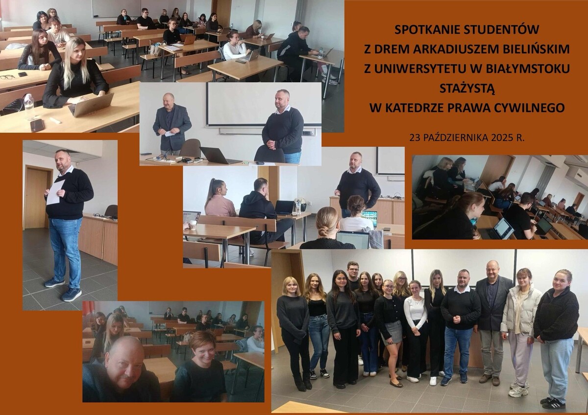 Dr Arkadiusz Bieliński z Katedry Prawa Cywilnego i Rolnego, kierowanej przez prof. Adama Doliwę, odbył w dniach 18-31 października 2025 r. staż naukowo-dydaktyczny na Wydziale Prawa i Administracji Uniwersytetu Mikołaja Kopernika w Toruniu w Katedrze Prawa Cywilnego, kierowanej przez prof. Tomasza Justyńskiego, pod czujnym okiem opiekuna stażu dr Ewy Kabzy.