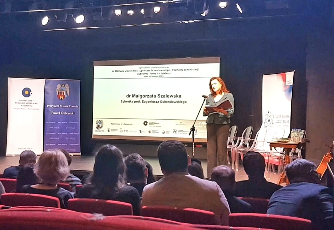 Dr hab. Joanna Radwanowicz-Wanczewska, prof. UwB, uczestniczyła w Ogólnopolskiej Konferencji Naukowej pt. „Podmioty administracji publicznej i formy ich działania”, zorganizowanej z okazji jubileuszu 100-lecia urodzin Prof. Eugeniusza Ochendowskiego. Spotkanie odbyło się 6 i 7 listopada 2025 r. na Wydziale Prawa i Administracji Uniwersytetu Mikołaja Kopernika w Toruniu.