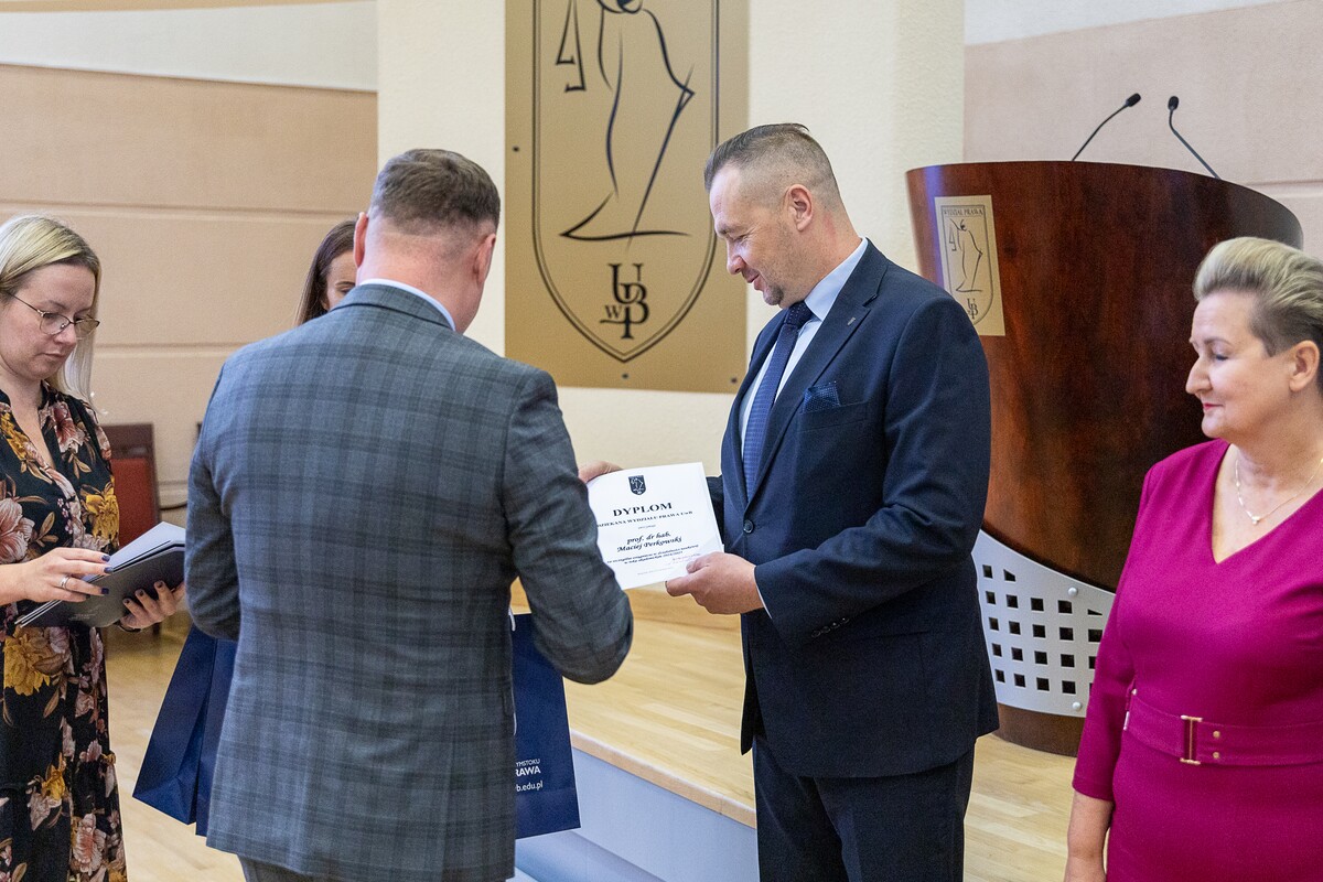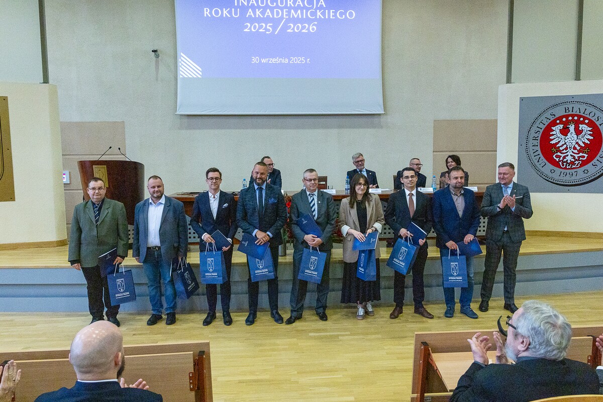 Tymczasem za szczególną działalność organizacyjną w roku akademickim 2024/2025 uhonorowani zostali: dr Maciej Aleksandrowicz, dr Maciej Etel, dr Wioleta Hryniewicka-Filipkowska, dr hab. Lech Jamróz, prof. UwB, dr Justyna Kulikowska-Kulesza, prof. dr hab. Katarzyna Laskowska, dr Justyna Omeljaniuk, dr Marcin Sowała, dr Konrad Wnorowski, dr hab. Iwona Wrońska, prof. UwB i mgr Wojciech Zoń.