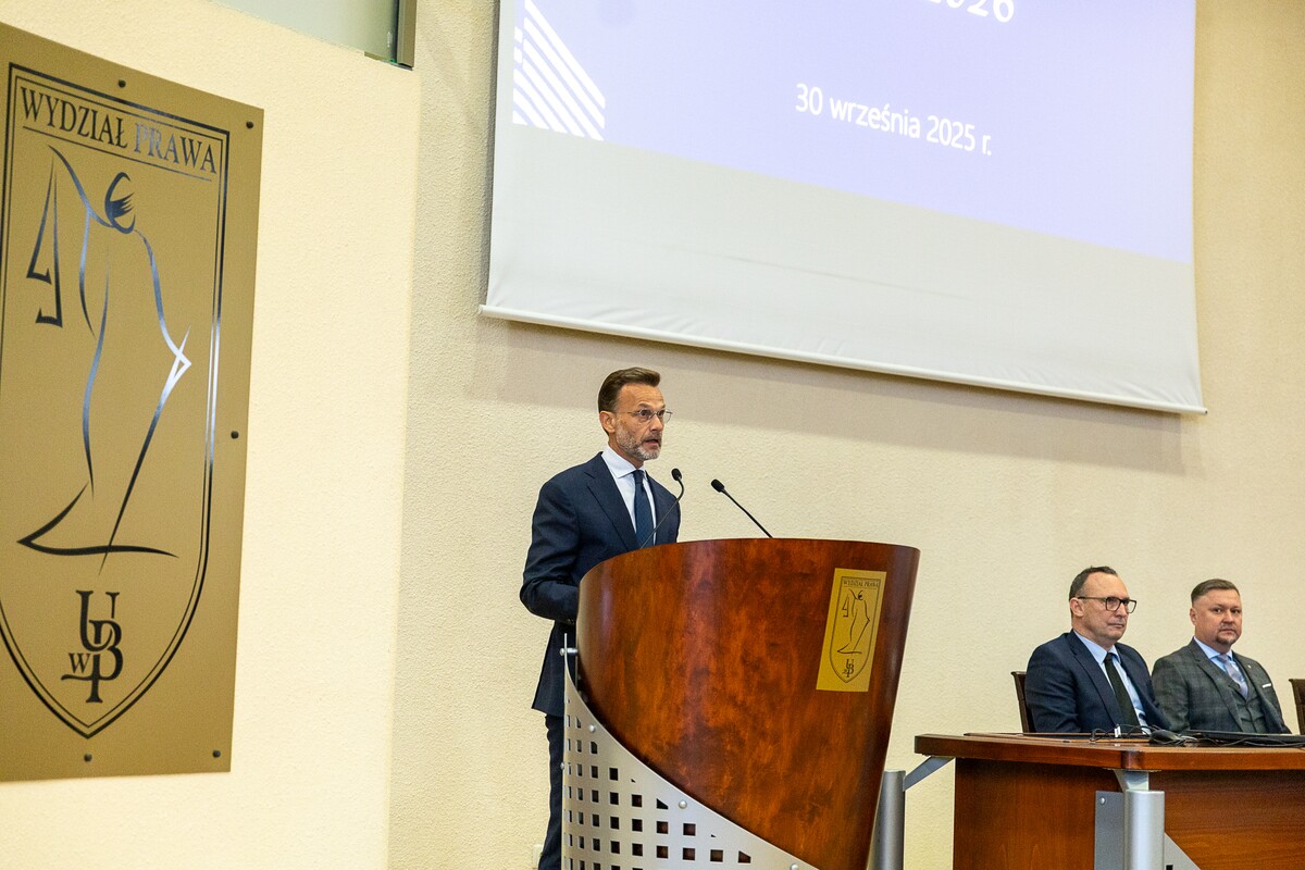 We wtorkowe (30.09.2025 r.) przedpołudnie, aula Wydziału Prawa Uniwersytetu w Białymstoku wypełniła się po same brzegi. Zgromadzili się na niej uczestnicy oficjalnej inauguracji roku akademickiego 2025/2026.