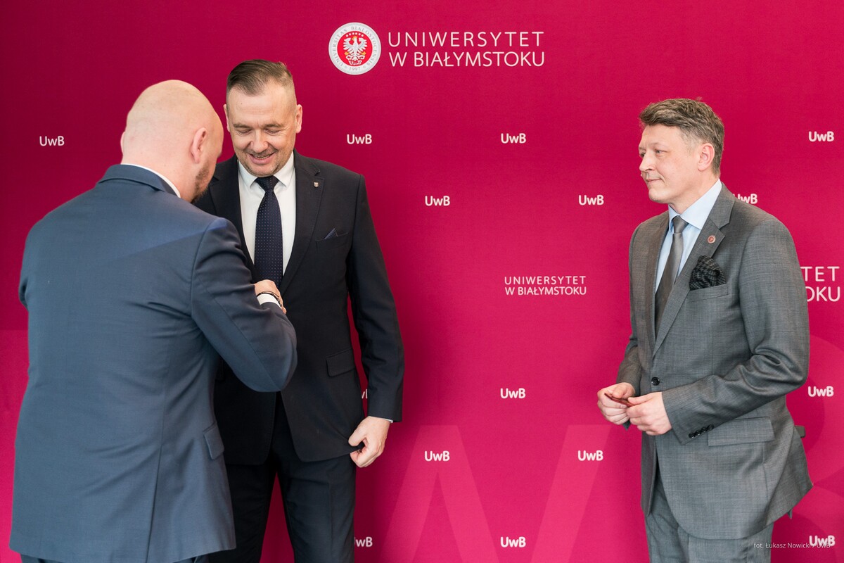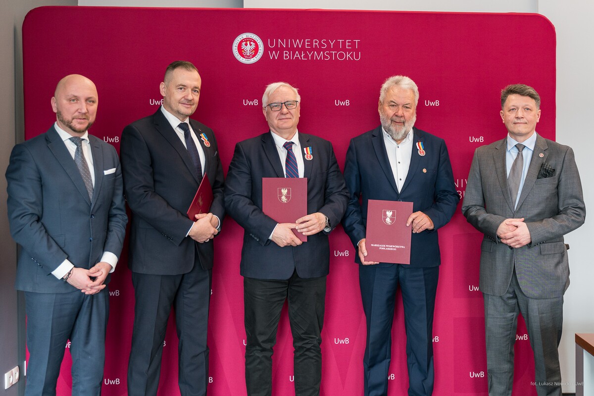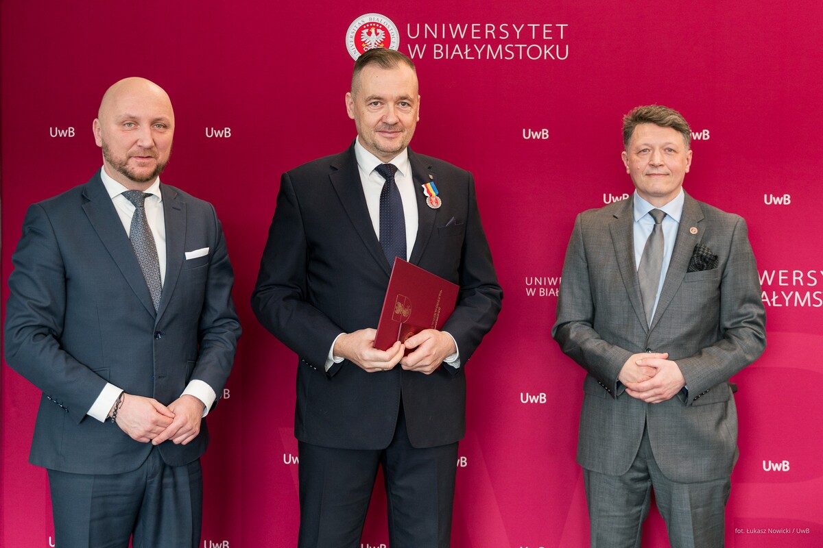 Aktu dekoracji dokonał Marszałek Łukasz Prokorym. Uroczystość odbyła się podczas dzisiejszego (18 marca 2026 r.) posiedzenia Senatu Uniwersytetu w Białymstoku.