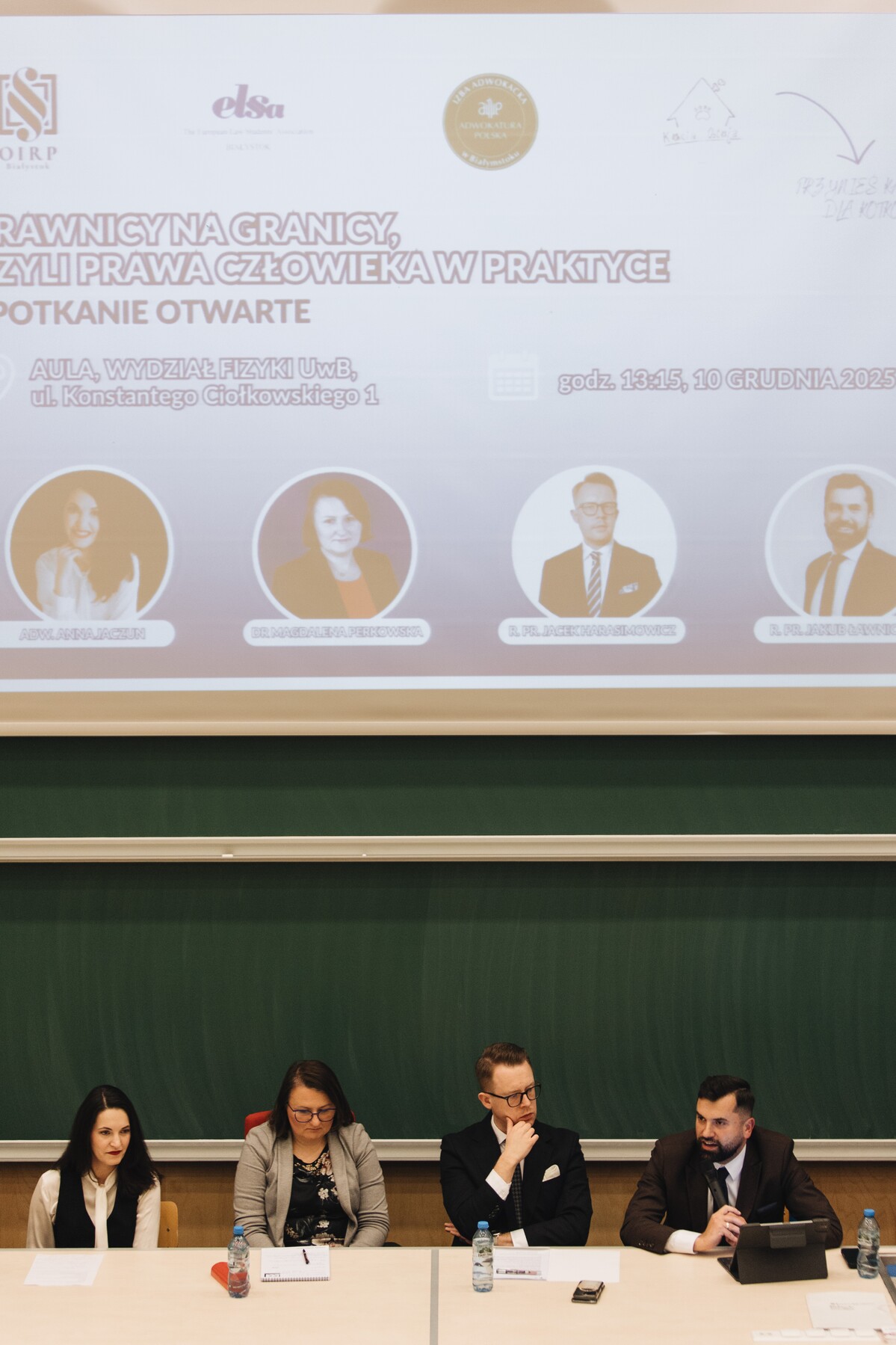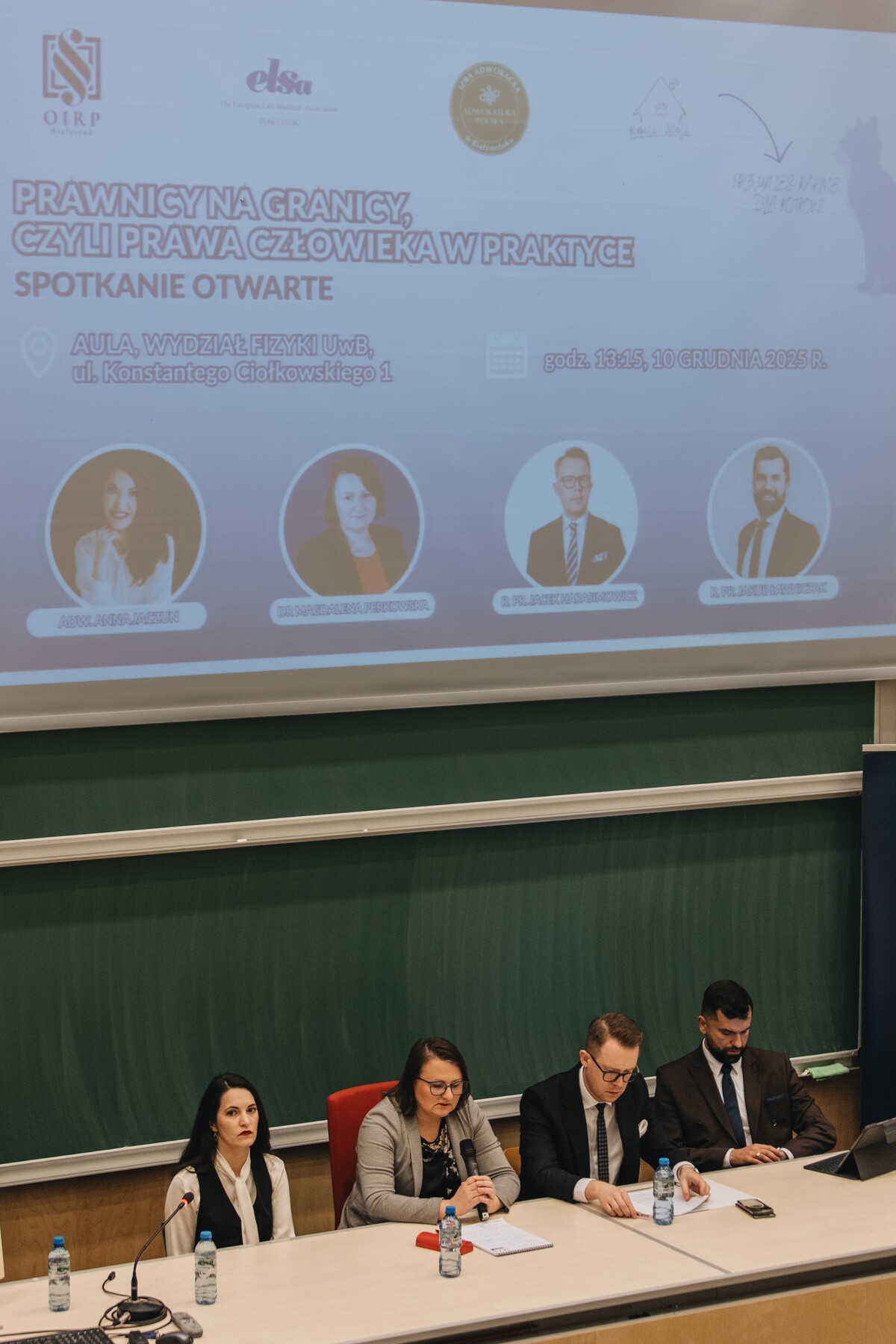 W ostatnią środę (10 grudnia 2025 r.) dr Magdalena Perkowska z Katedry Prawa Karnego i Kryminologii wzięła udział w panelu dyskusyjnym "Prawnicy na granicy, czyli prawa człowieka w praktyce" poświęconym praktycznym wyzwaniom związanym z ochroną praw człowieka na terenach przygranicznych.
