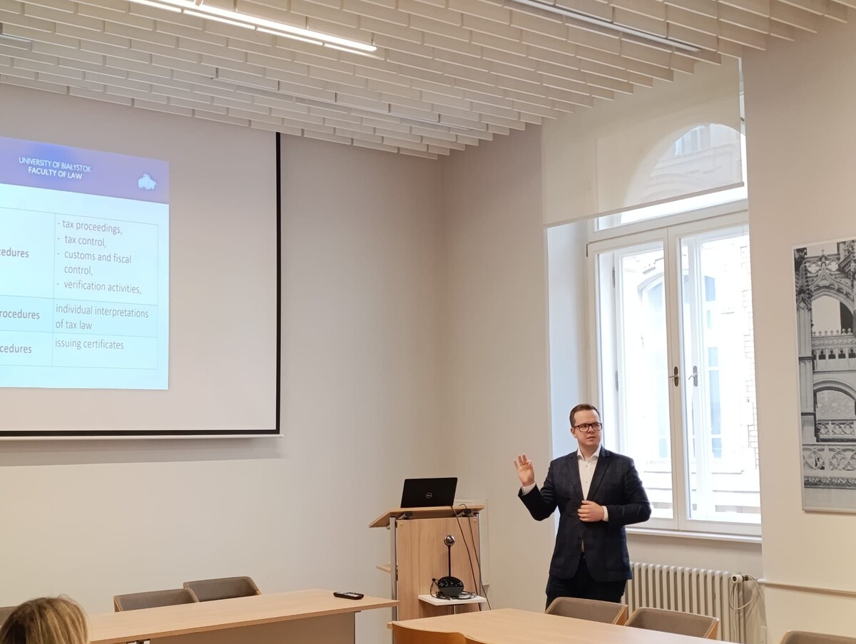 Dr Łukasz Presnarowicz wygłosił ponadto prelekcję dla studentów i doktorantów Wydziału Prawa zatytułowaną „Tax procedures in Poland”.