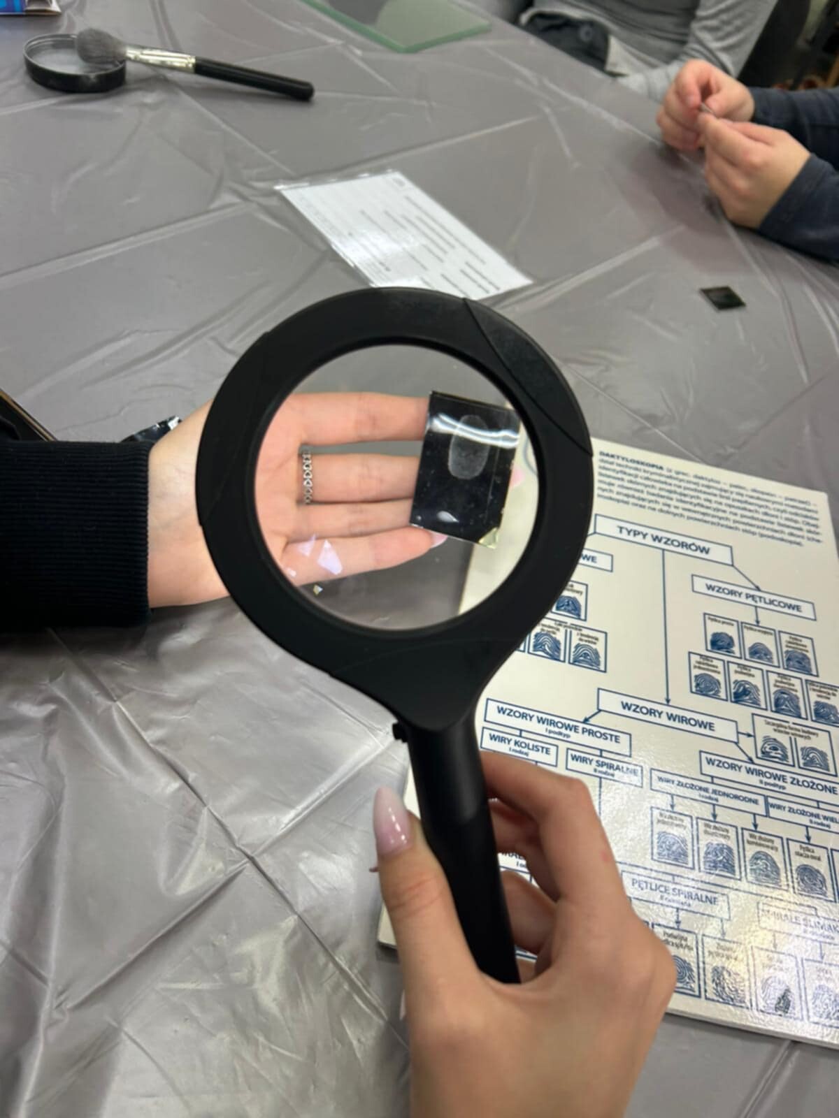 Każdy zainteresowany mógł otrzymać na pamiątkę odciski swoich linii papilarnych oraz materiał zabezpieczony na folii żelowej w oparciu o zasadę kontrastu, do którego powstania niezbędny był przede wszystkim jasny szary proszek, czyli argentorat.