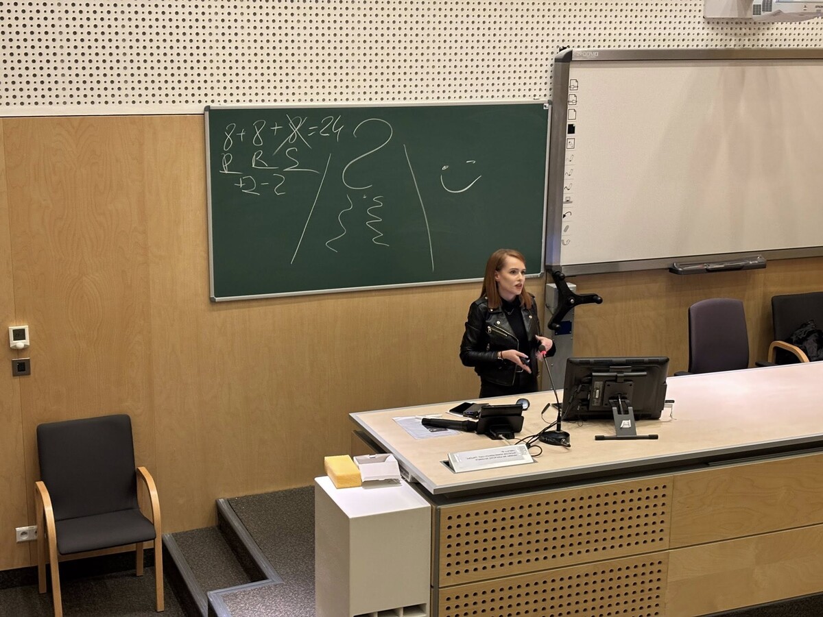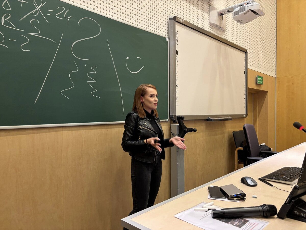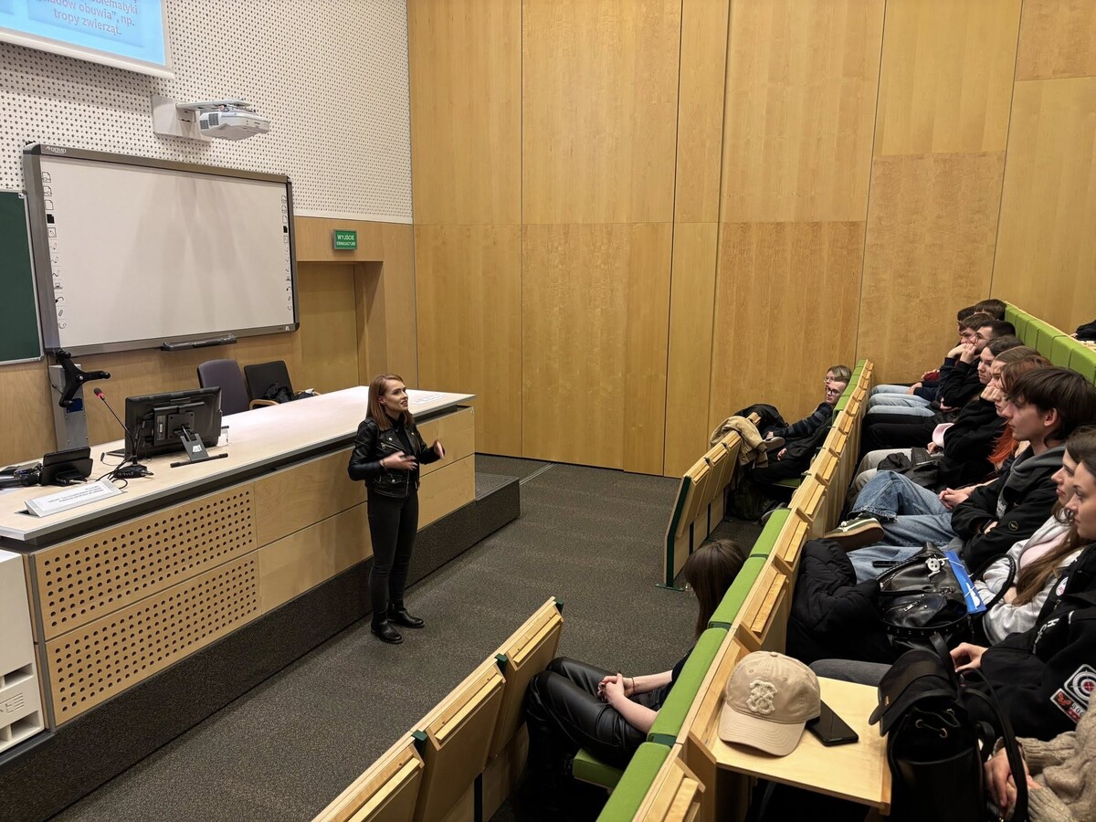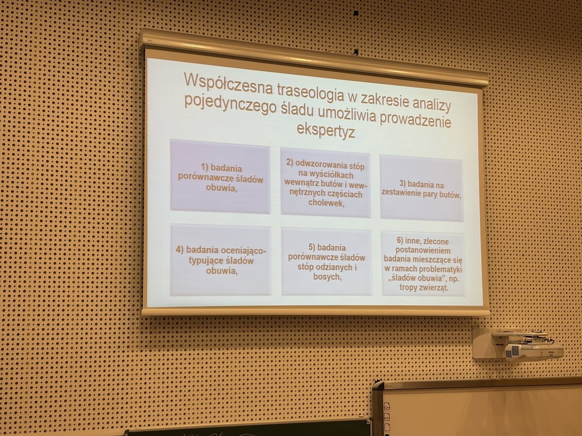 Wydział Prawa mocno zaakcentował również swoje zaangażowanie w popularyzację wiedzy prawniczej i kryminalistycznej. Dużym powodzeniem cieszył się wykład dr Justyny Omeljaniuk poświęcony traseologii. Uczestnicy mieli okazję poznać, jak analizuje się ślady pozostawiane przez ludzi, pojazdy i przedmioty oraz jak istotną rolę tego typu badania odgrywają w procesach dowodowych. Przystępny sposób prezentacji sprawił, że nawet osoby wcześniej niezwiązane z kryminalistyką z zainteresowaniem śledziły specjalistyczne zagadnienia.