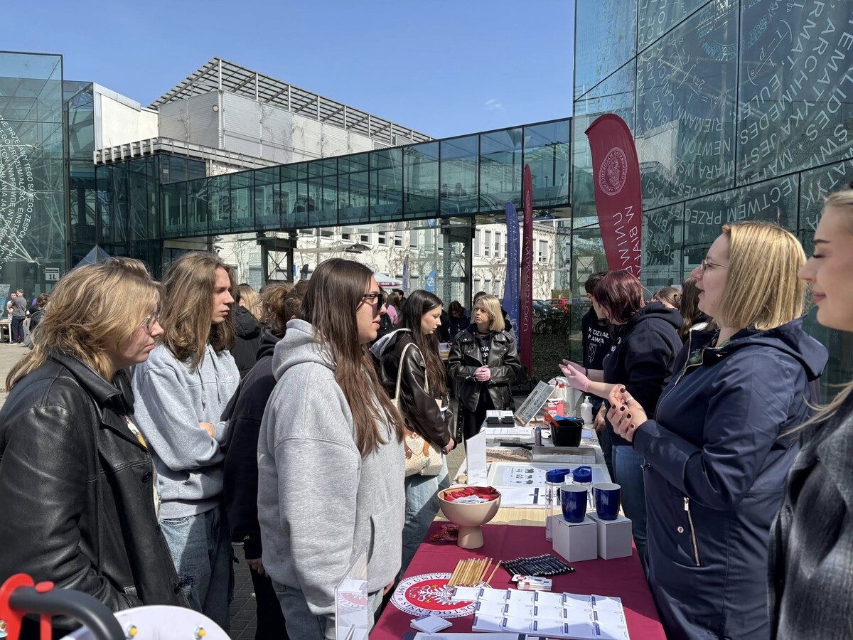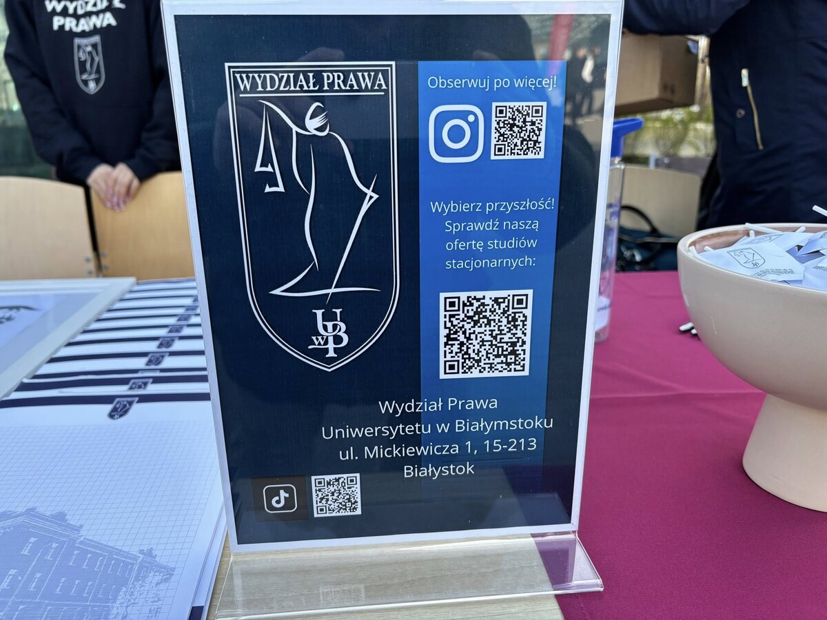 Jednym z najchętniej odwiedzanych miejsc było stoisko Wydział Prawa UwB. Jego przestrzeń od rana wypełniała młodzież zainteresowana nie tylko samymi studiami prawniczymi, lecz także szerokim wachlarzem możliwości zawodowych, jakie się z nimi wiążą. Pracownicy naukowi oraz studenci w przystępny sposób tłumaczyli, na czym polega współczesne kształcenie prawnicze, jak dużą rolę odgrywają dziś kompetencje praktyczne oraz jak wygląda współpraca wydziału z sądami, administracją publiczną i rynkiem usług prawniczych.