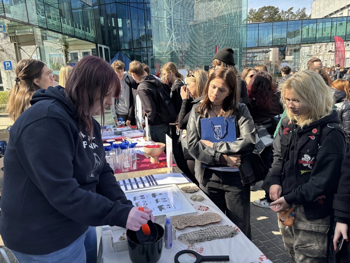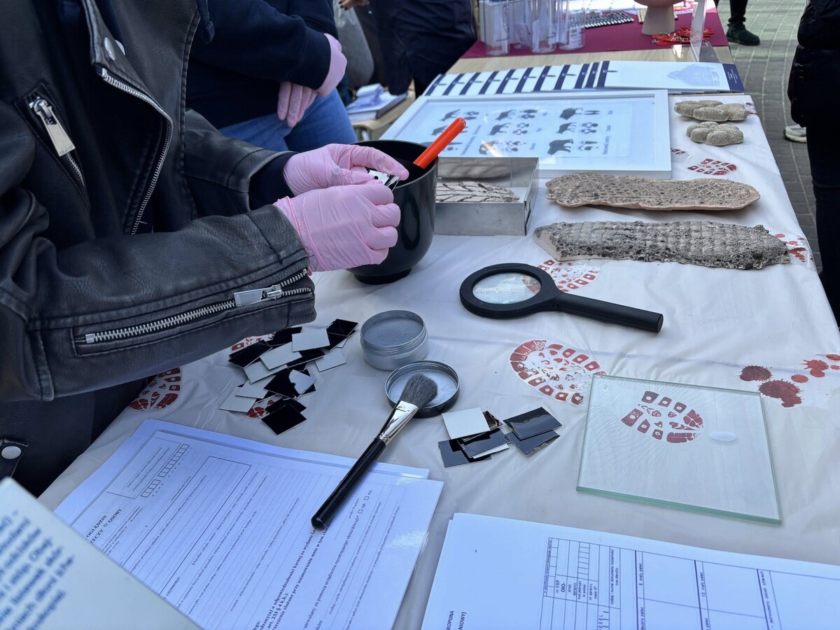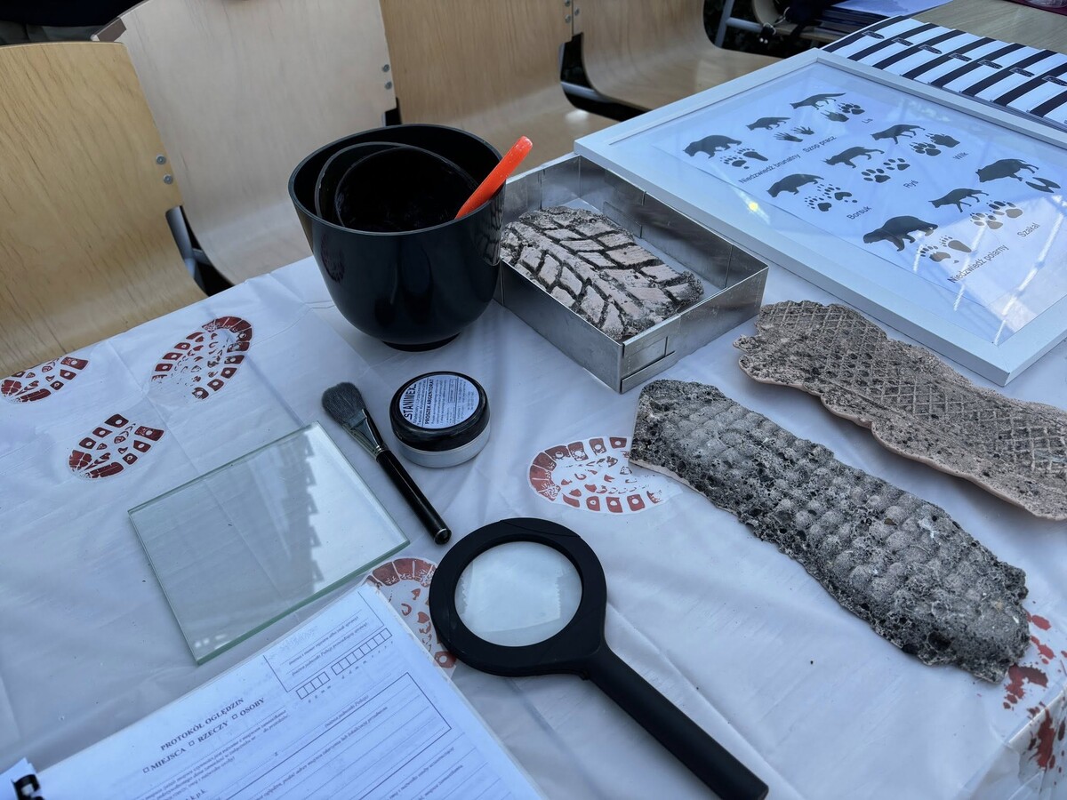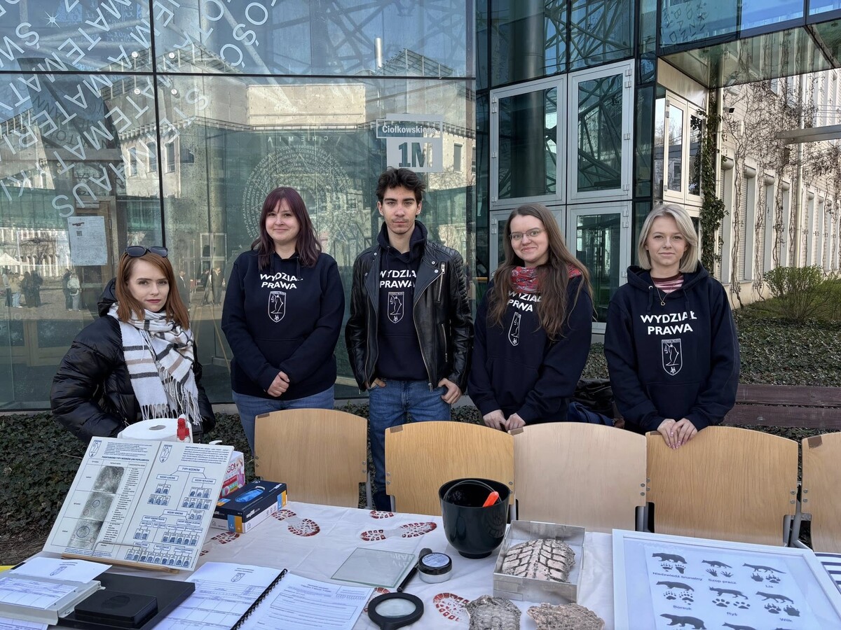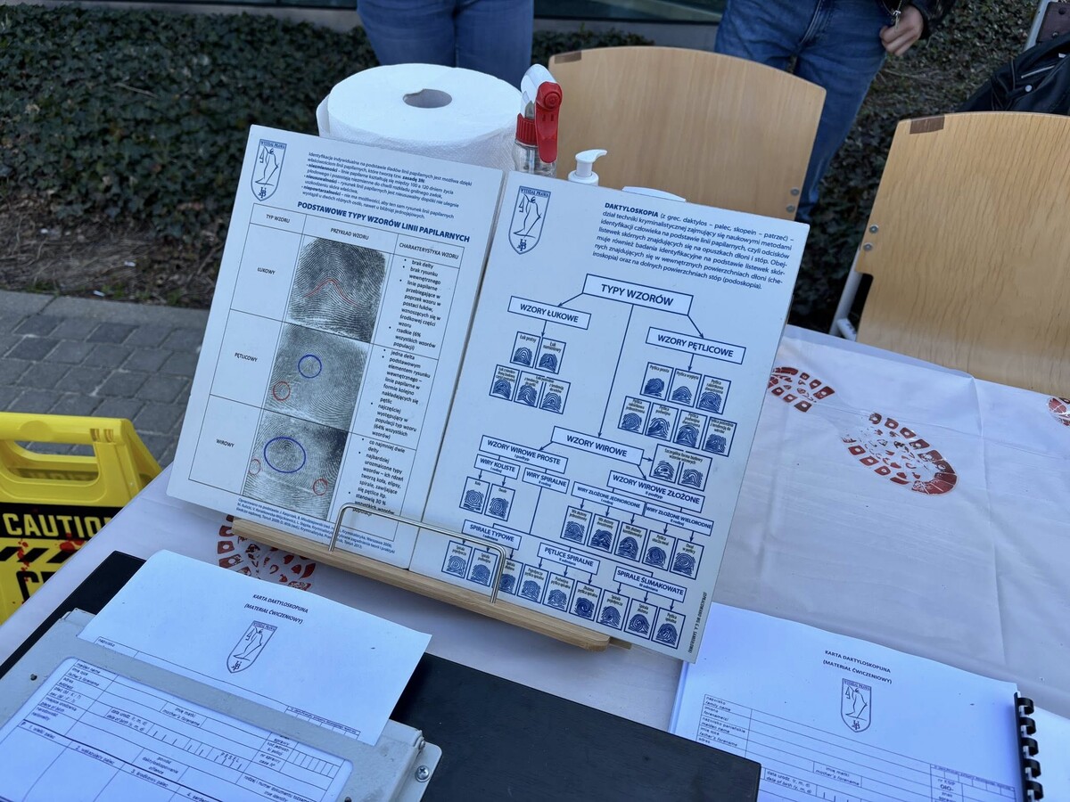 Równolegle studenci Koła Naukowego Prawa Karnego i Kryminologii zaprosili odwiedzających do stoiska daktyloskopijnego. Możliwość samodzielnego wykonania odcisków palców i zobaczenia ich analizy „na żywo” była w przypadku uczestników jednym z najbardziej zapadających w pamięć elementów Dnia Otwartego. Obok prezentowano również odlewy śladów wykorzystywane w traseologii, co pozwalało spojrzeć na prawo karne z bardzo konkretnej, namacalnej perspektywy.