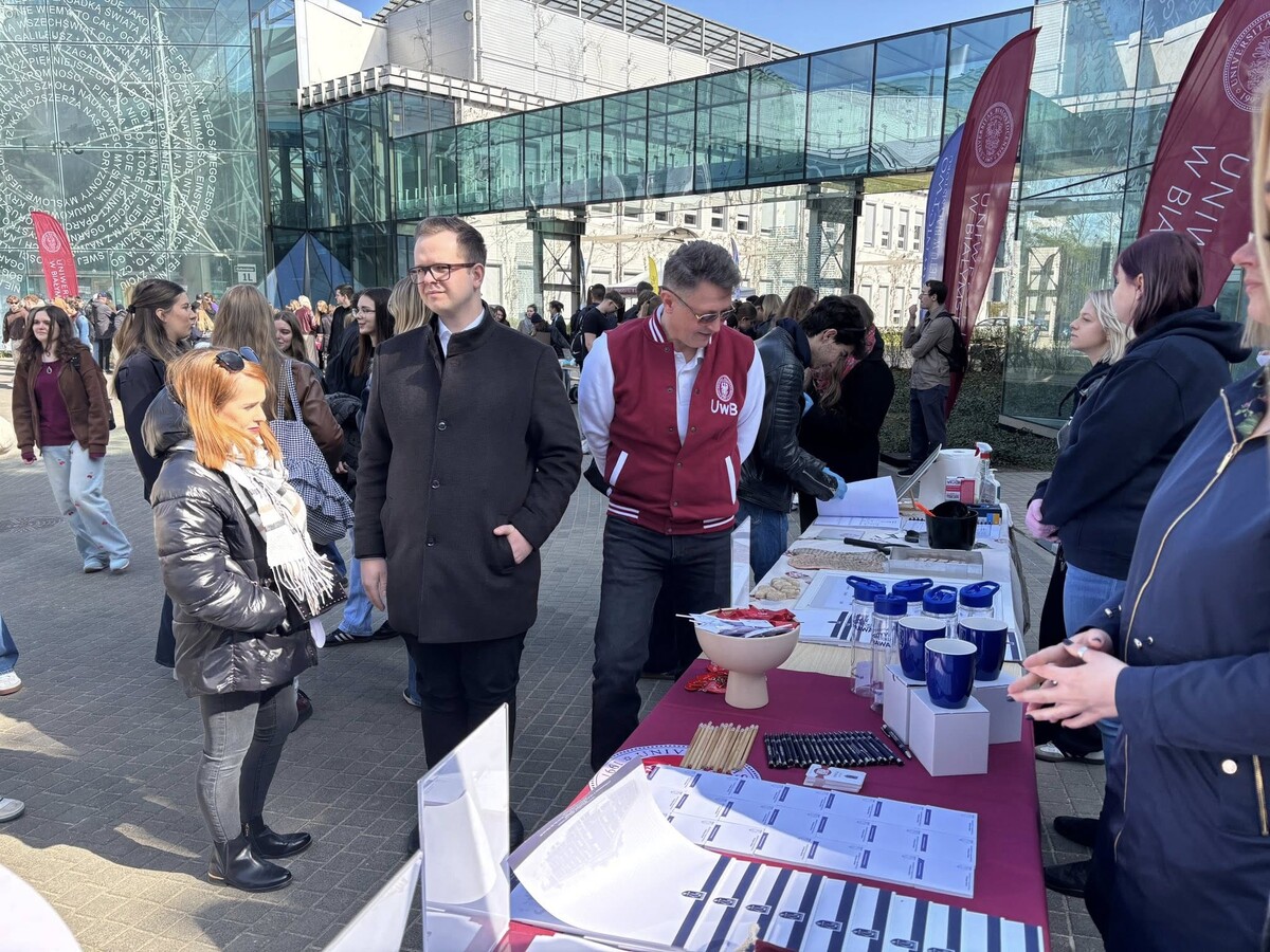 Dzisiaj (14 kwietnia 2026 r.), Kampus Uniwersytetu w Białymstoku tętnił życiem. Setki uczniów szkół średnich, ich rodzice oraz nauczyciele pojawili się przy ul. Ciołkowskiego, by wziąć udział w Dniu Otwartym UwB - wydarzeniu, które na kilka godzin zamieniło akademicką przestrzeń w wielkie laboratorium doświadczeń, rozmów i inspiracji. Tegoroczna edycja nie tylko potwierdziła silną pozycję Uniwersytetu w regionie, lecz także pokazała, jak nowocześnie i atrakcyjnie można dziś opowiadać o studiowaniu. Oficjalnego otwarcia dokonał Rektor Uniwersytetu w Białymstoku - prof. dr hab. Mariusz Popławski.