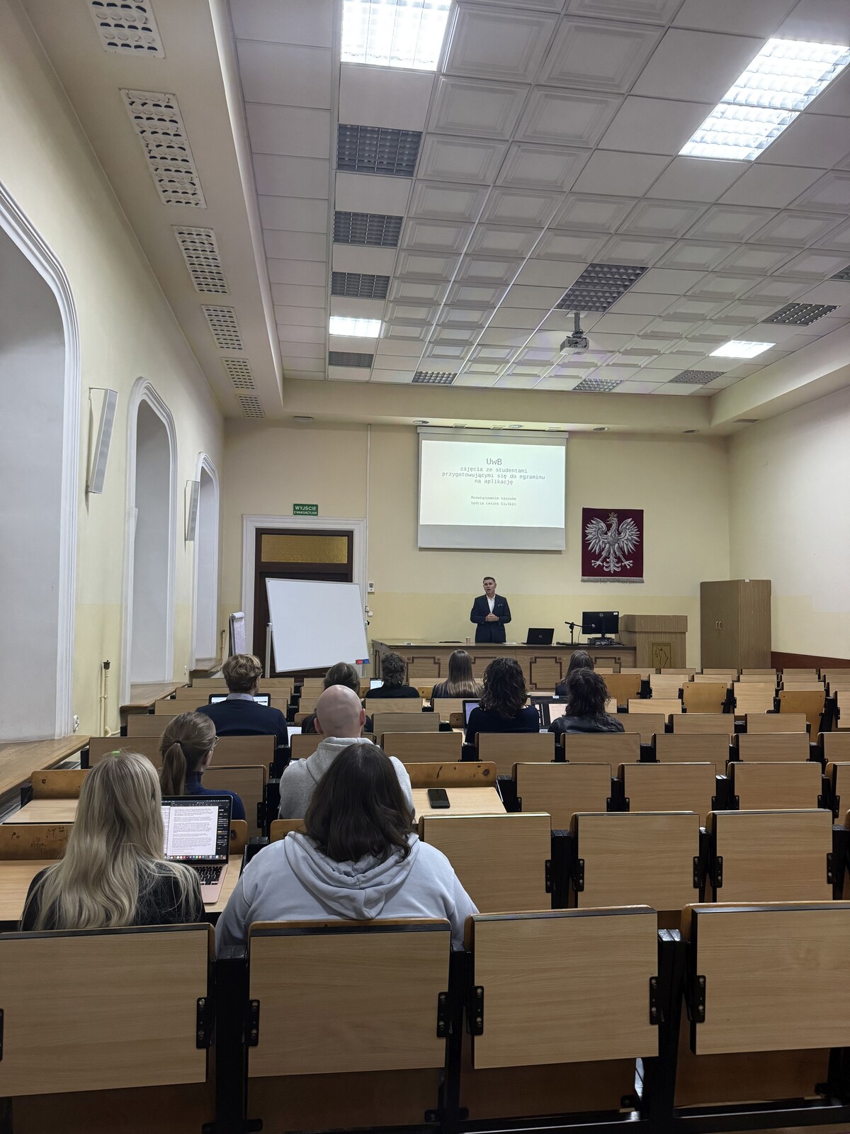 4 listopada 2025 r. odbył się warsztat rozwiązywania kazusów z prawa prywatnego, prowadzony przez Sędziego Sądu Okręgowego w Białymstoku - Leszka Ciulkina. Wydarzenie zgromadziło studentów IV i V roku oraz absolwentów naszego Wydziału planujących przystąpić do egzaminu wstępnego na aplikację sędziowską i prokuratorską w tym roku. Uczestnicy mieli okazję pogłębić swoją wiedzę i praktyczne umiejętności w przyjaznej atmosferze.