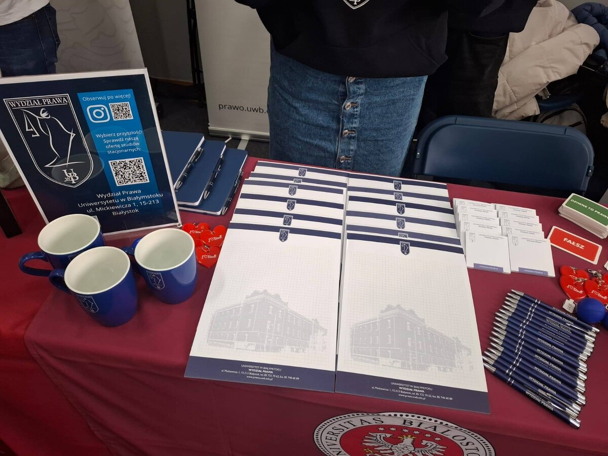 Wczoraj (10 lutego 2026 r.) w II LO im. Księżnej Anny z Sapiehów Jabłonowskiej w Białymstoku odbyła się kolejna edycja Targów Edukacyjnych. Na stoisku przygotowanym przez Wydział Prawa Uniwersytetu w Białymstoku zaprezentowaliśmy naszą ofertę edukacyjną, a studenci opowiadali o tym, jak wygląda studiowanie w gmachu przy ul. Mickiewicza 1 w Białymstoku.