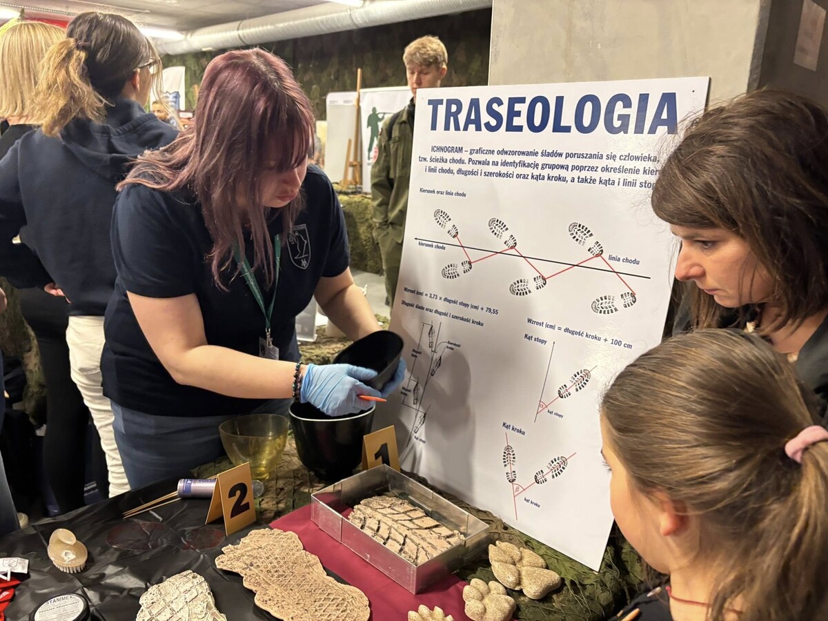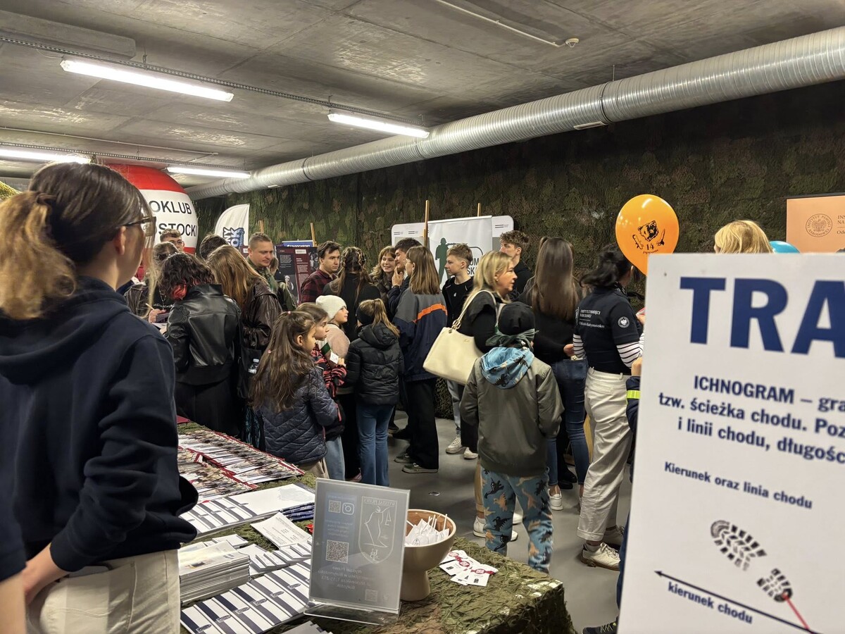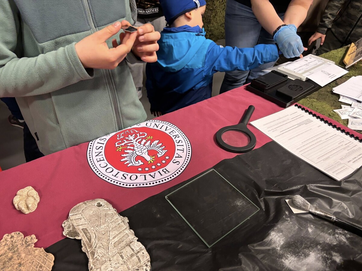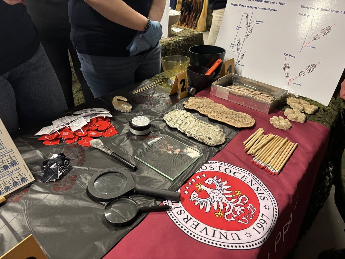 Obok stanowiska daktyloskopijnego prezentowano również odlewy śladów wykorzystywane w traseologii, co pozwalało uczestnikom spojrzeć na prawo karne z bardziej praktycznej i namacalnej perspektywy. Dzięki takim inicjatywom stoisko Wydziału Prawa UwB wyróżniało się na tle innych, łącząc wiedzę akademicką z atrakcyjną formą przekazu.