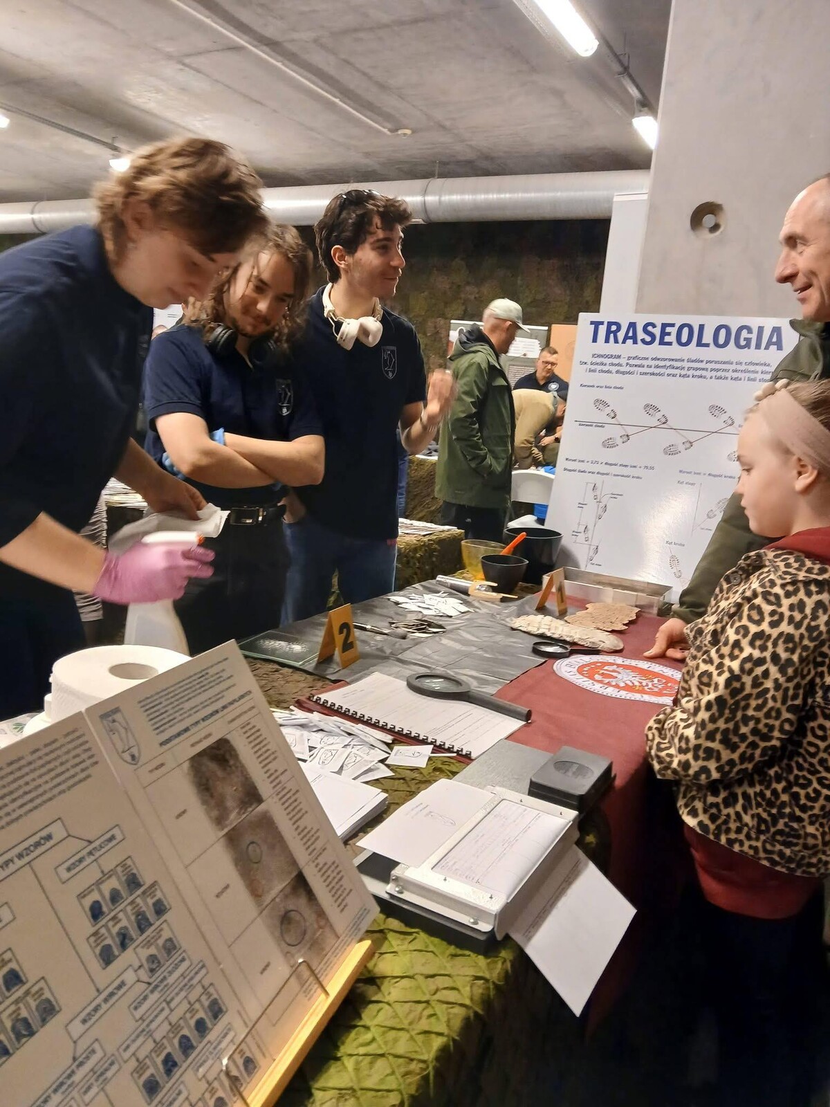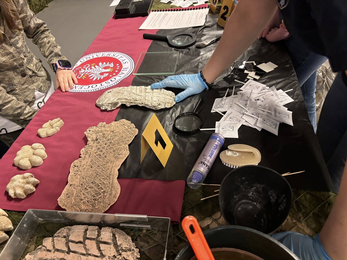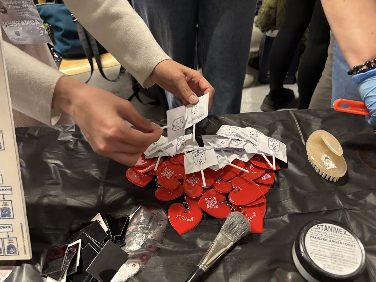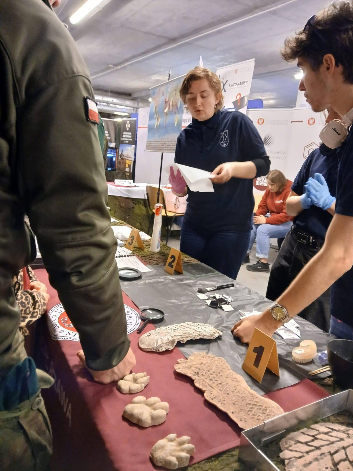 Obok stanowiska daktyloskopijnego prezentowano również odlewy śladów wykorzystywane w traseologii, co pozwalało uczestnikom spojrzeć na prawo karne z bardziej praktycznej i namacalnej perspektywy. Dzięki takim inicjatywom stoisko Wydziału Prawa UwB wyróżniało się na tle innych, łącząc wiedzę akademicką z atrakcyjną formą przekazu.