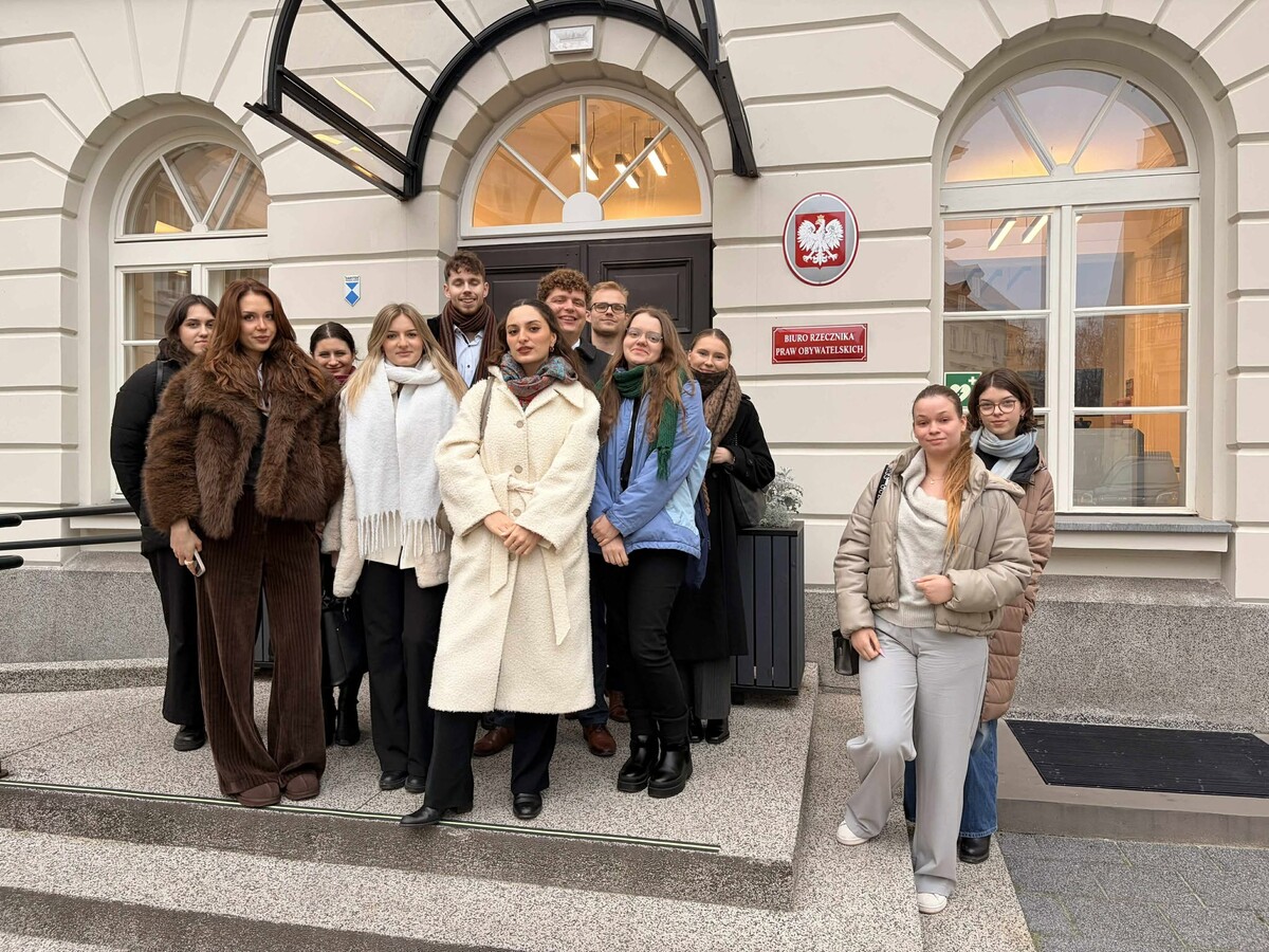 Pod koniec ubiegłego roku, a dokładnie 19 grudnia 2025 r., grupa trzynastu studentów Wydziału Prawa UwB odwiedziła Biuro Rzecznika Praw Obywatelskich w Warszawie. Wyjazd został zorganizowany przez Studenckie Koło Współpracy Międzynarodowej w związku z obchodami Międzynarodowego Dnia Praw Człowieka.