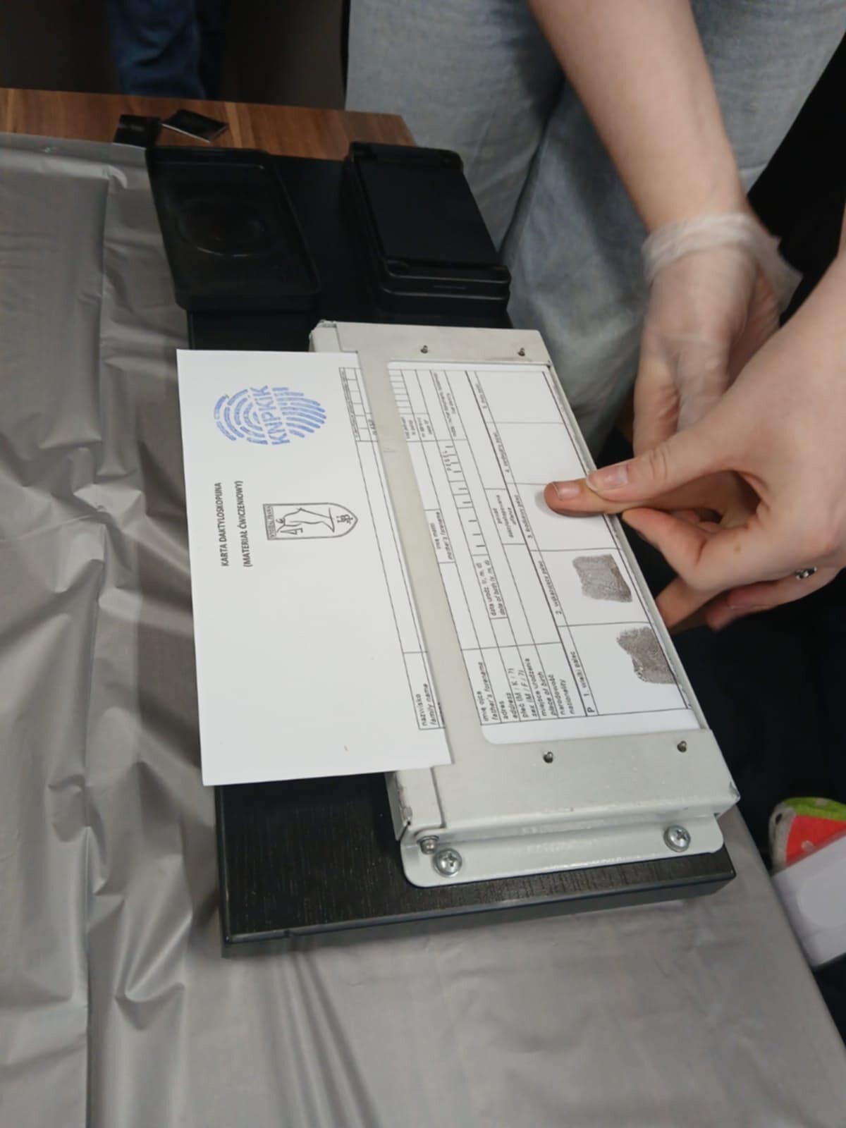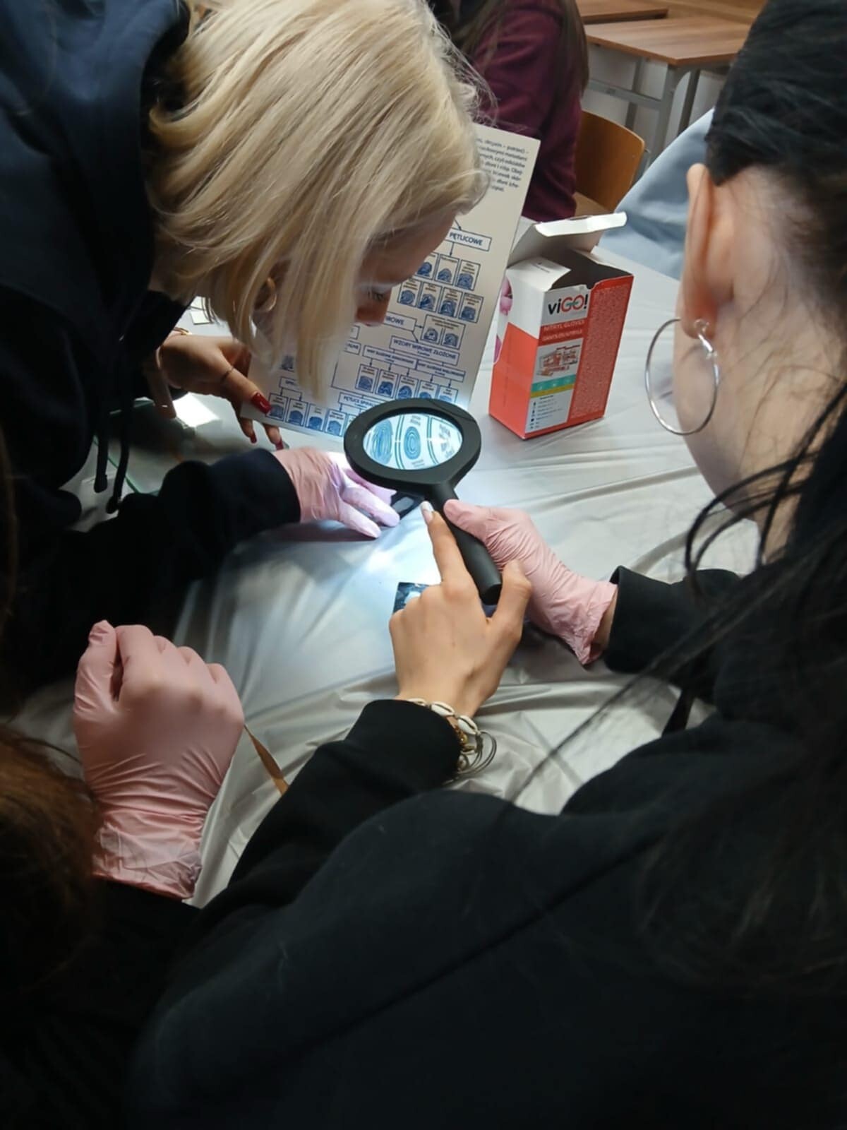 Wraz z opiekunem stoiska daktyloskopijnego - dr Justyną Omeljaniuk grupa studentek z Koła Naukowego Prawa Karnego i Kryminologii przeprowadziła zajęcia z daktyloskopii.
