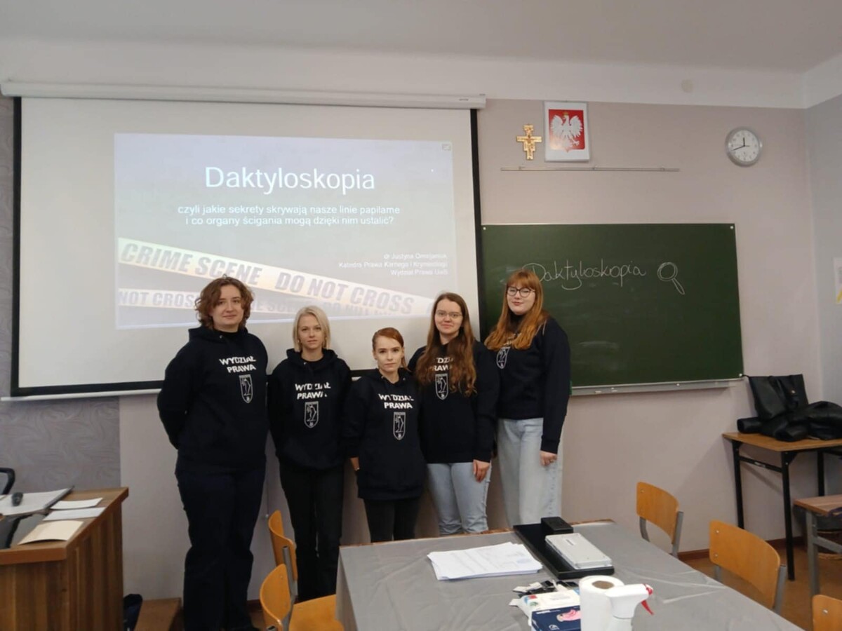 Wczoraj (21.11.2025 r.), na zaproszenie XI Liceum Ogólnokształcącego przy ul. Grottgera w Białymstoku, przedstawiciele Wydziału Prawa UwB przybliżali uczniom tajniki techniki kryminalistycznej, jaką jest daktyloskopia.